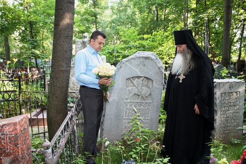 Член Нижегородского отделения ИППО, наместник Вознесенского Печерского монастыря архимандрит Тихон (Затекин), заместитель председателя Московского областного отделения ИППО Александр Николаевич Панин и член Совета Московского областного отделения ИППО Семен Яковлевич Ваксман возложили цветы на могилу выдающегося русского живописца, одного из основоположников русского модерна в его национально-романтическом варианте, автора многих картин на исторические и сказочные сюжеты Виктора Михайловича Васнецова (1848-1926).
