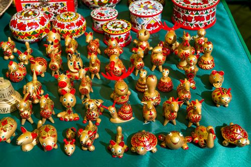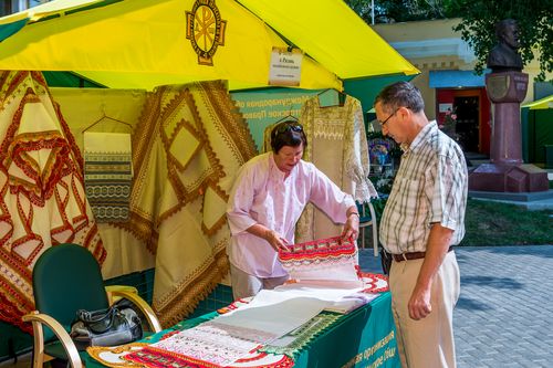 На ярмарках были представлены изделия таких знаменитых промыслов, как павлопосадские платки, михайловское кружево, ярославская майолика и донской фаянс, елецкая вышивка, петрозаводские куклы, томская роспись по дереву и поделки из бересты, чувашские изделия из бисера и резьба по дереву, текстиль в лоскутной технике. Достойное место на этих ярмарках заняли изделия из гжели.