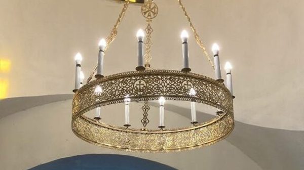 Справочно: Хорос от древнегреч. – круг. Как правило одноярусное церковное паникадило круглой формы. Свечи на хоросе символизируют звёздное небо. Данная конфигурация церковного светильника является наиболее древней. На заре христианства, когда собрания верующих проходили в домах хоросом, именовался центр жилища, где по кругу рассаживались члены общины, символизируя равенство всех перед Богом. Позднее, хоросом стало называться подкупольное пространство в храмах, где крепились светильники. Двенадцать свечей обозначают двенадцать апостолов Христа. Термин «хорос» связан с начальными словами молитвы: «Вместе помолимся…». Византийская форма хороса была привнесена на Русь и получила широкое распространение в домонгольской храмовой архитектуре.