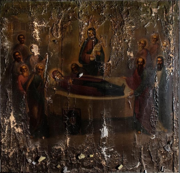 В результате многочисленных подтоплений пространства Гефсиманского храма, которые происходили до середины прошлого века, многие иконы были утрачены. Особую озабоченность настоятеля вызывало состояние именно русской иконы Успения Богоматери, о ней он беспокоился больше всего, понимая, не будучи специалистом, что это не только почитаемый образ, но и выдающееся произведение церковного искусства и памятник истории.