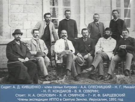 Леонид Андреевич продемонстрировал присутствующим фото участников археологической экспедиции Императорского Православного Палестинского Общества под руководством академика Н. П. Кондакова 1891–92 гг., результаты которой были изложены им в сборнике «Сообщения ИППО» в 1892 году, а затем и в капитальном труде «Археологическое путешествие по Сирии и Палестине».  Экспедиция прошла о маршруту Константинополь — Афины — Бейрут — Гауран — Заиорданье — Иерусалим. В архиве ИППО хранится 1 000 фотографических снимков с редчайших памятников древности, свыше 50 акварелей и 20 планов. Побывала экспедиция и в Иерихоне, а один из ее участников — молодой 22-летний ученый Я. И. Смирнов 12–21 ноября 1891 г. провел полевые работы на иоасафовском участке, принадлежавшем с 1886 года Императорскому Православному Палестинскому Обществу. Это были первые русские исследования византийского Иерихона. И вот спустя почти 120 лет российским археологам наконец-то удалось вернуться в Иерихон. Именно такой заголовок — «120 лет спустя» и предложил журналистам, присутствующим на пресс-конференции, Л. А. Беляев.