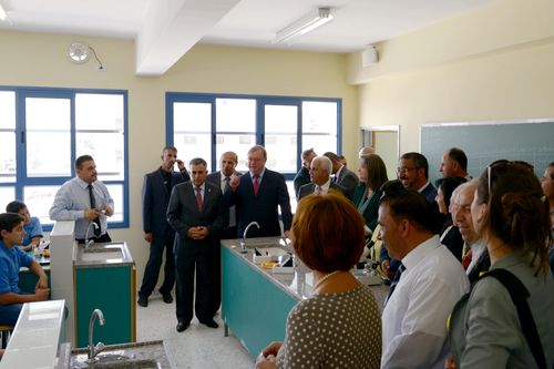 Затем высокие представители открыли памятную табличку, установленную на стене школы у входа, и разрезали традиционную ленточку в дверях.