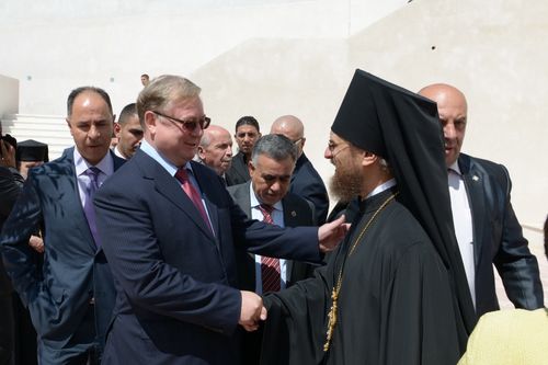Из Иерусалима прибыл Блаженнейший Патриарх Святого града Иерусалима и всей Палестины Феофил III. Сергей Вадимович тепло поблагодарил Блаженнейшего Патриарха за то, что он откликнулся на приглашение Императорского Православного Палестинского Общества принять участие в церемонии и придал своим присутствием особую значимость столь важному событию.
