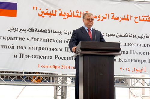 "История русских школ в Палестине насчитывает почти полтора века. Основанные Императорским Православным Палестинским Обществом они способствовали распространению просвещения на Ближнем Востоке. Сотни палестинцев получили в них образование и стали цветом арабской интеллигенции - известными учёными и переводчиками, поэтами, писателями и педагогами. И сегодня, спустя почти сто лет, традиция восстанавливается в древнейшем библейском городе Вифлееме открывает свои двери новая русская школа. Уверен, открытие русской школы не только станет символом дружбы, но и послужит дальнейшему развитию добрых и сердечных отношений между нашими народами".