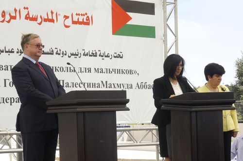 Г-жа Х.Шахшир зачитала обращение президента Палестины Махмуда Аббаса, в котором он напомнил, что корни партнерства и сотрудничества между Палестиной и Россией имеют длительную историю и являются итогом договоренностей и планомерной работы с обеих сторон. Махмуд Аббас выразил надежду, что школа в Вифлееме станет пилотным проектом, который проложит дорогу русским школам в других палестинских городах.
