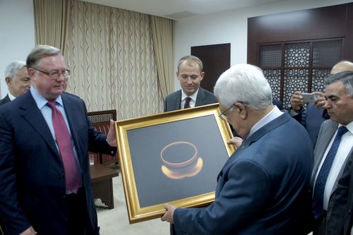 На память о встрече Сергей Вадимович подарил Махмуду Аббасу картину в стиле "magic of arts", написанную действительным членом Императорского Православного Палестинского Общества, членом Союза художников Подмосковья Юрием Захарченко. Его работы выставлялись в Москве, Анталии, Эр-Рияде, Берлине, Париже, часть работ находится в частных коллекциях в России и за рубежом.