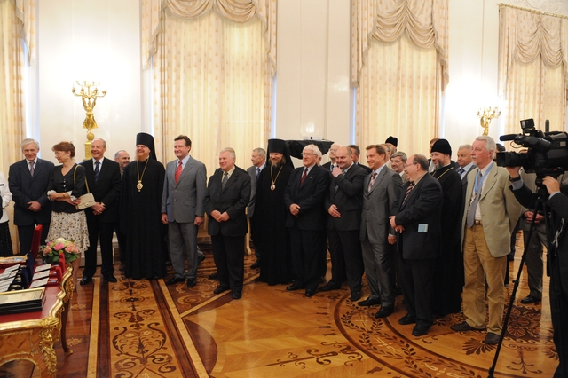 ![]() ![]() Гости, приглашенные на торжественный прием в российском МИДе по случаю передачи Сергиевского подворья в Иерусалиме в собственность России |