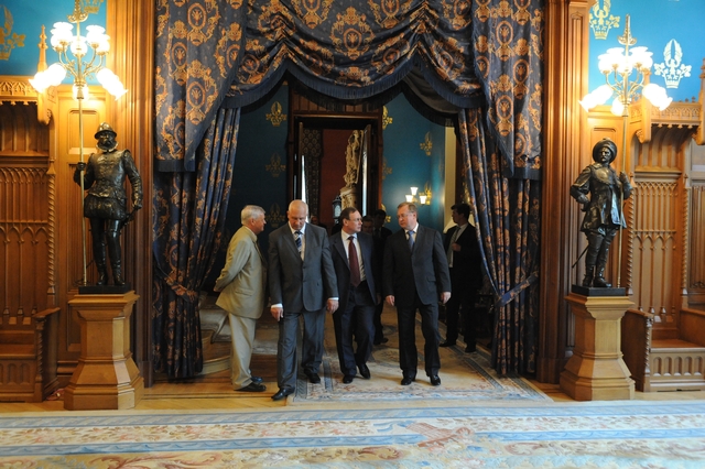 ![]() Прибытие гостей. Справа налево: Председатель Счетной палаты РФ, Председатель ИППО С. В. Степашин, член Совета ИППО, заместитель директора Департамента Ближнего Востока и Северной Африки МИД РФ О. Б. Озеров, заместитель Председателя ИППО Ю. А. Грачев ![]() Прибытие гостей. Управляющего делами Президента Российской Федерации В. И. Кожина встречают заместитель Председателя ИППО Ю. А. Грачев и заместитель директора Департамента Ближнего Востока и Северной Африки МИД РФ, член Совета ИППО О. Б. Озеров