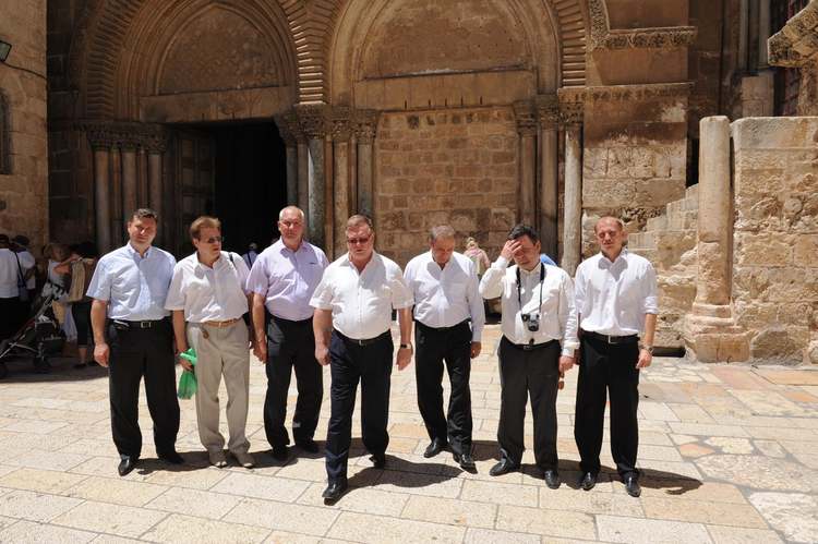 | После окончания церемонии закладки камня в фундамент КДЦ ИППО в Вифлееме  российская делегация посетила храм Гроба Господня в Иерусалиме  |