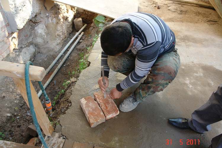 | Очистка кирпича, который отправится в далекое путешествие для закладки фундамента КДЦ ИППО в Вифлееме    |