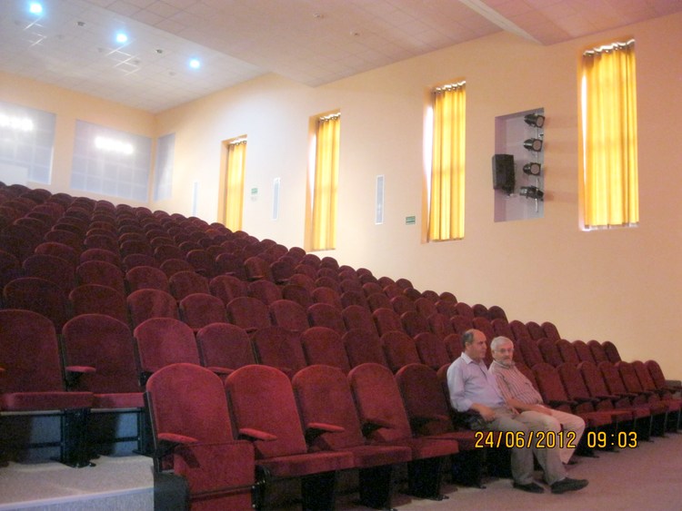 Концертный зал на 350 мест. Первыми удобство кресел пробуют строители Центра — Дауд Матар (Вифлеем) и Станислав Таслицкий (РуссНефть)