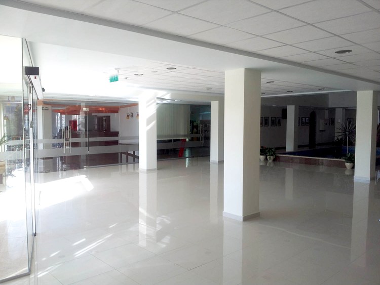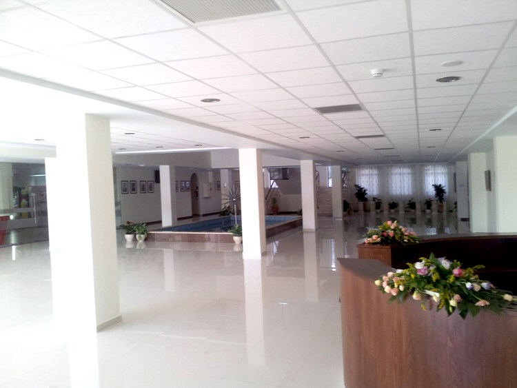 В холле декоративный бассейн с фонтаном дарит желанную прохладу