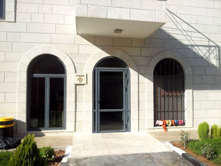 По бокам входа видны барельефы со знаком ИППО, который исторически украшает все постройки Императорского Православного Палестинского Общества на Святой Земле