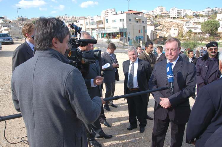 | Председатель ИППО, Председатель Счетной палаты РФ дает интервью «1 каналу» на русском участке ИППО в Вифлееме. 16 декабря 2008 г. |