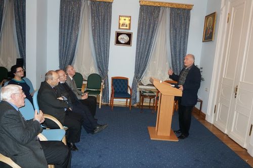 С докладом "Олег Герасимович Пересыпкин в Палестинском Обществе: портрет на фоне эпохи" выступил заместитель Председателя Императорского Православного Палестинского Общества, доктор исторических наук Николай Николаевич Лисовой.