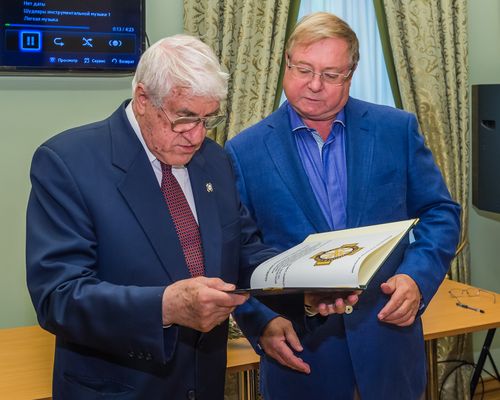 Сергей Вадимович вручил юбиляру приветственный адрес, в котором говорится: