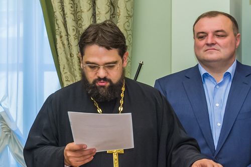 Приветствие от почетного члена Императорского Православного Палестинского Общества, председателя Отдела внешних церковных связей Московского Патриархата митрополита Илариона (Алфеева) зачитал член Совета ИППО, заведующий сектором межрелигиозных контактов ОВЦС иерей Димитрий Сафонов.