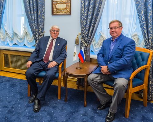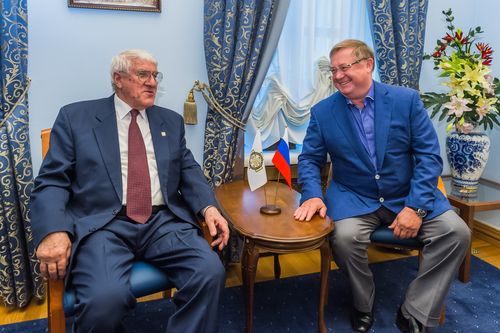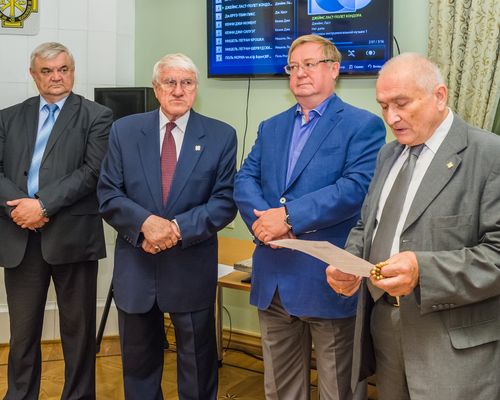 Сергей Вадимович отметил, что он благодарен Олегу Герасимовичу за то, что тот руководя Обществом в непростое напряженное время, сумел придать ему новый импульс и в то же время сохранить исторический дух организации.