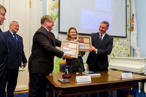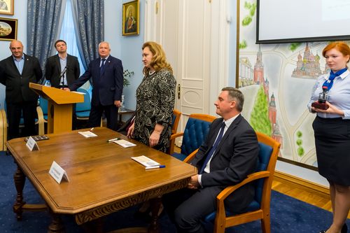 Глава ИППО сообщил, что Владимир Никонов является также автором памятного знака, изготовленного по мотивам учрежденного великой княгиней Елисаветинского благотворительного общества специально к юбилейной дате, он будет вручаться участникам торжеств в Дармштадте.