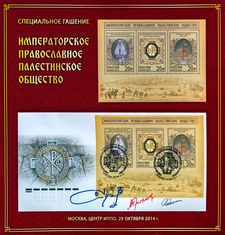 29 октября 2014 года в Центре Императорского Православного Палестинского Общества в Москве состоялась торжественная церемония гашения почтового блока «Императорское Православное Палестинское Общество».