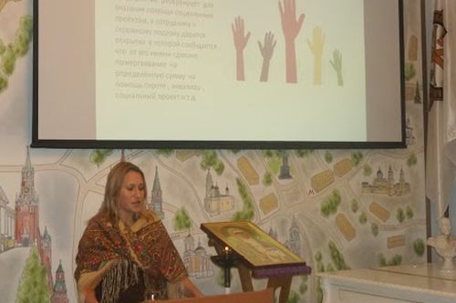 С докладом о многогранной деятельности великой княгини Елизаветы Федоровны по организации благотворительных базаров выступила Ковальская Елена Юрьевна, представитель Фонда по премиям памяти митрополита Московского и Коломенского Макария (Булгакова).